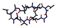 Originellement isolée dans un échantillon de sol en Norvège, la Ciclosporine A est la forme principale du médicament. C'est un peptide cyclique d'onze acides aminés synthétisé par un champignon microscopique, Tolypocladium inflatum. Elle comporte des acides aminés dextrogyres, rarement rencontrés dans la nature[1].